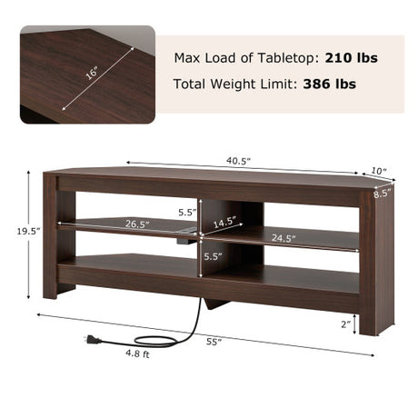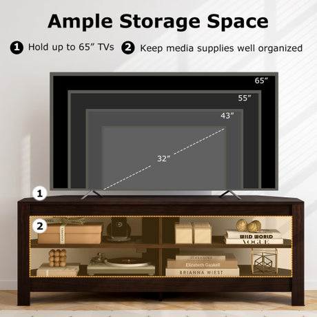 Corner TV Stand with Power Outlet and 4 Open Storage Shelves-Brown