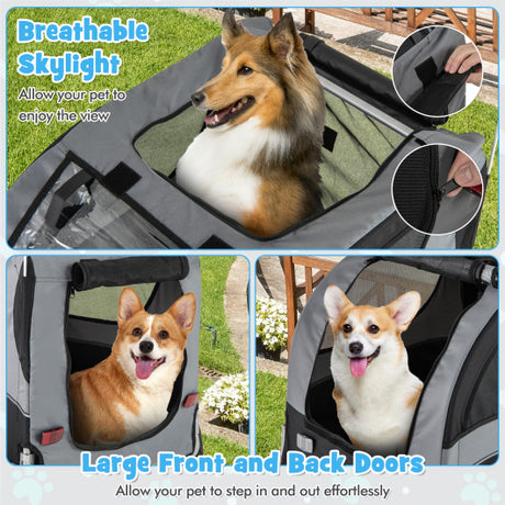 Dog Bike Trailer Foldable Pet Cart with 3 Entrances for Travel-Gray
