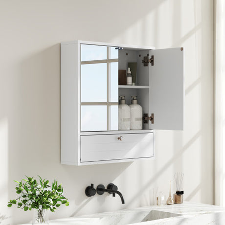 Double Door Wall-Mounted Bathroom Mirrored Medicine Cabinet-White