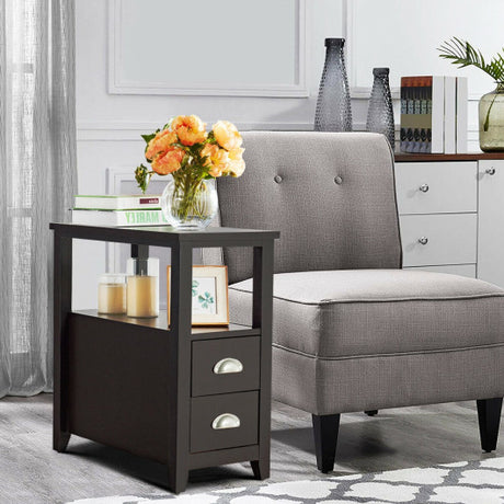End Table Wooden with 2 Drawers and Shelf Bedside Table-Dark Brown