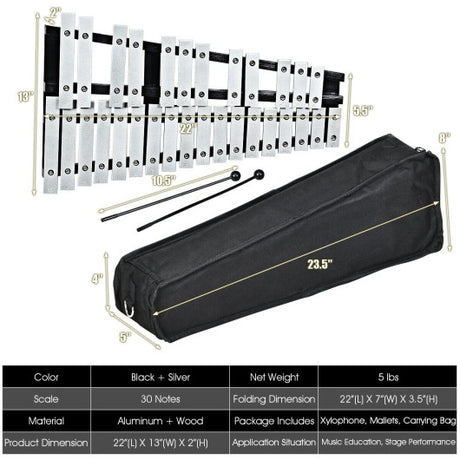 Foldable Aluminum Glockenspiel Xylophone 30 Note with Bag