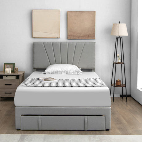 Full/Queen Size Upholstered Bed Frame with Drawer and Adjustable Headboard-Full Size