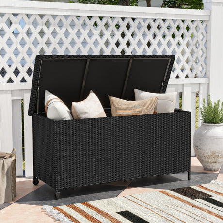 Indoor Outdoor 85 Gallon Storage Container with Waterproof Liner and Universal Wheels-Black