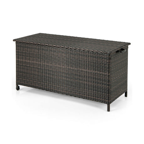 Indoor Outdoor 85 Gallon Storage Container with Waterproof Liner and Universal Wheels-Brown