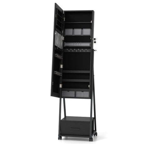 Jewelry Cabinet Stand Mirror Armoire with Large Storage Box-White