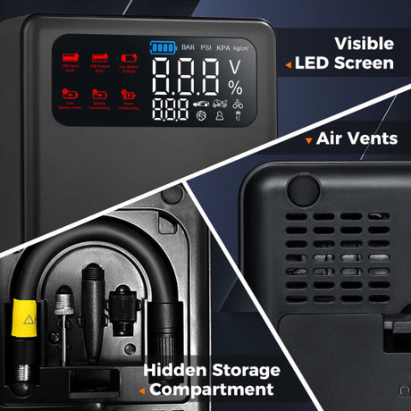 Jump Starter Air Compressor Power Bank Charger with LED Light and DC Outlet