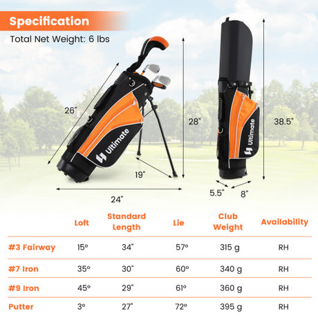 Junior Complete Golf Club Set For Age 8 to 10-Yellow