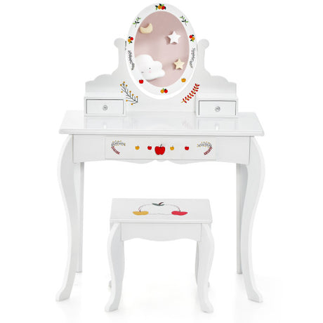 Kids Vanity Makeup Table & Chair Set Make Up Stool-White