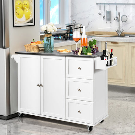 Kitchen Island 2-Door Storage Cabinet with Drawers and Stainless Steel Top-White
