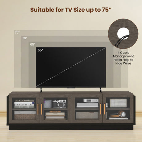 Large TV Stand for TVs up to 75 Inch with 4 Tempered Glass Doors for Living Room-Gray