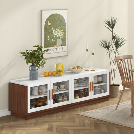 Large TV Stand for TVs up to 75 Inch with 4 Tempered Glass Doors for Living Room-White