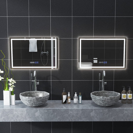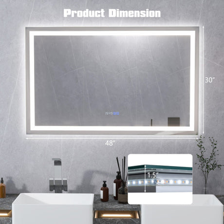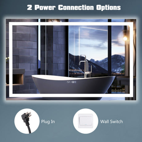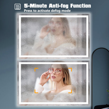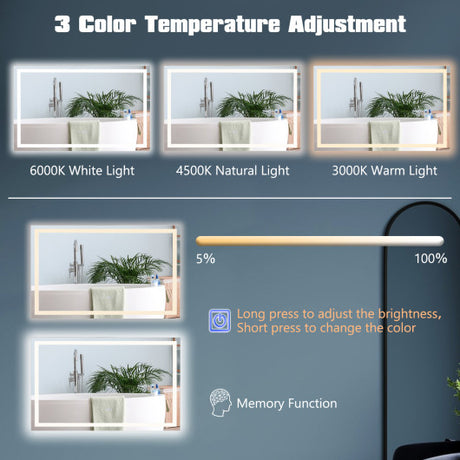 LED Bathroom Mirror Wall Mounted Rectangle Mirror with 3-Color Dimmable Lights-L