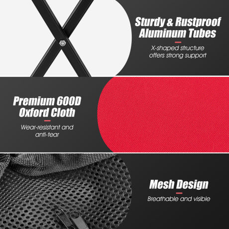 Lightweight Foldable Tennis Ball Teaching Cart with Wheels and Removable Bag-Red