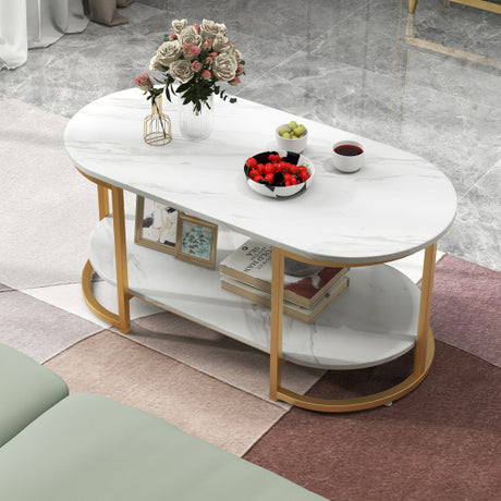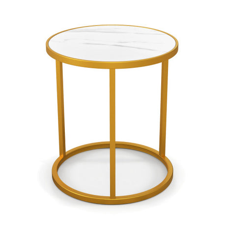 Marble Top Round Side Table 16-Inch End Table with Golden Metal Frame-2 Pieces