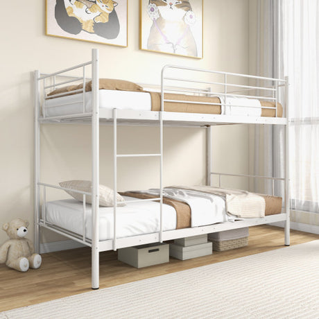 Metal Bunk Bed with Ladder and Full-length Guardrails-White