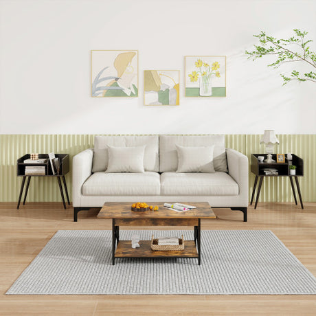 Mid Century Modern Nightstand with Open Shelves-Brown