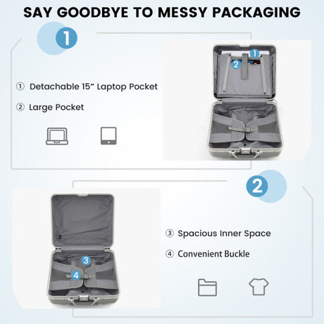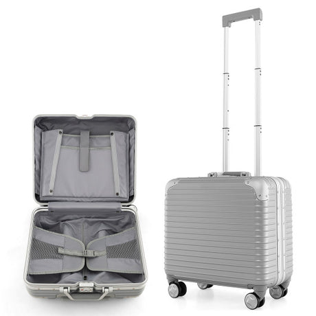 16 Inch Under-seat Carry On Luggage with Spinner Wheels and Laptop Compartment-Sliver