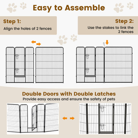 16 Panel 24/32/40 Inches Height Dog Playpen with Lock and Large Door-32 inches