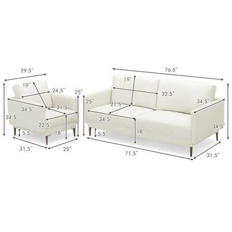 Modern Sofa Couch with Solid Metal Legs and Removable Backrest Cushion-White