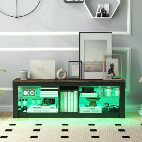 Modern TV Stand with LED Light and Adjustable Shelves for TVs up to 65 inch-Brown
