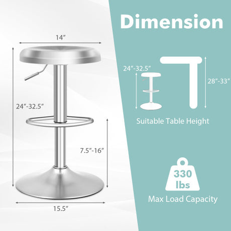 Modern Swivel Adjustable Height Bar Stool with Footrest-2 Pieces