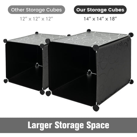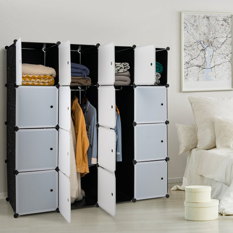 16-Cube Storage Organizer with 16 Doors and 2 Hanging Rods-Black