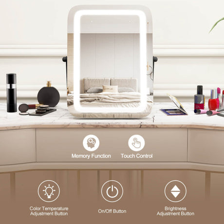 16 x 12 Inch Rectangular Vanity Makeup Mirror with 3 Color Dimmable Lighting-White