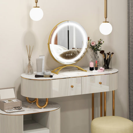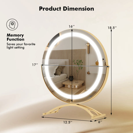 16 x 16 Inch Round LED Vanity Mirror with 3-Color Lighting and Brightness Dimming-Golden