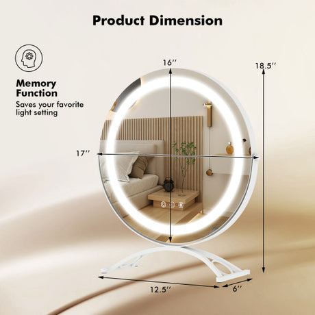16 x 16 Inch Round LED Vanity Mirror with 3-Color Lighting and Brightness Dimming-White