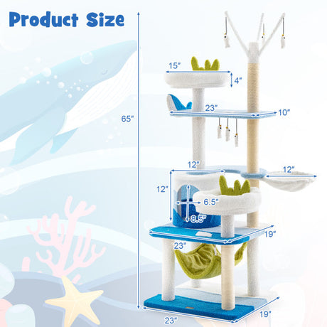 Multi-level Cat Tower with Sisal Covered Scratching Posts-Blue