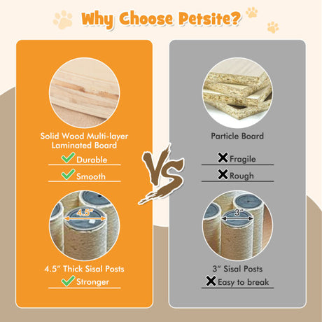 Multi-level Cat Tower with Sisal Covered Scratching Posts-S