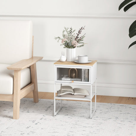 Nightstand with Drawer and Storage Cabinet Wooden Sofa Side Table End Table