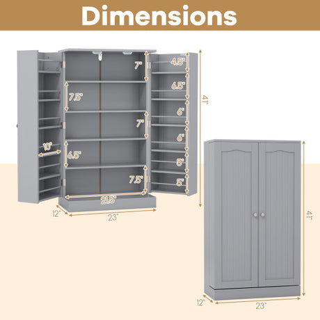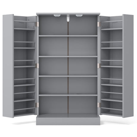 17-Tier Kitchen Pantry Cabinet with 2 Doors and 6 Adjustable Shelves-Gray