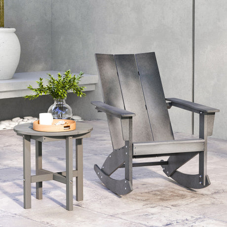 18 Inch Adirondack Round Side Table with Cross Base and Slatted Surface-Gray