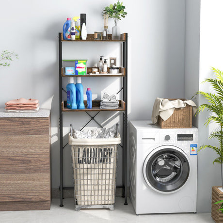 Over The Toilet Storage Rack with Hooks and Adjustable Bottom Bar-Rustic Brown