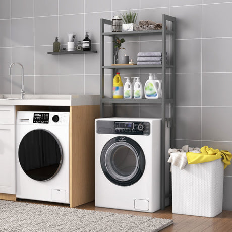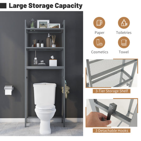 Over-The-Toilet Storage Shelf Space Saving Metal Bathroom Organizer Hooks-Gray
