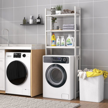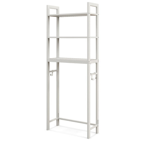 Over The Toilet Storage Rack with Hooks and Adjustable Bottom Bar-White