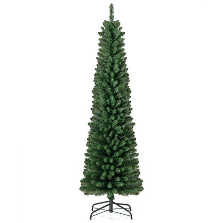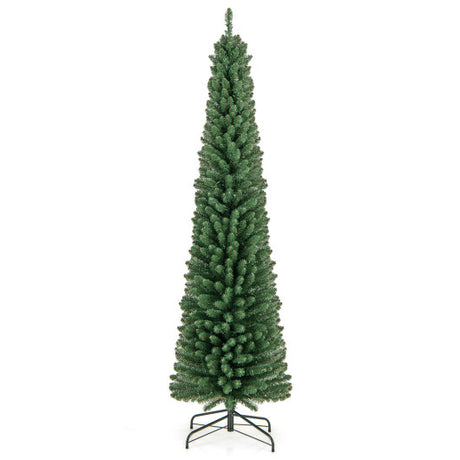 Pencil Christmas Tree with Memory Wire Branch Tips and Warm LED Lights-7FT