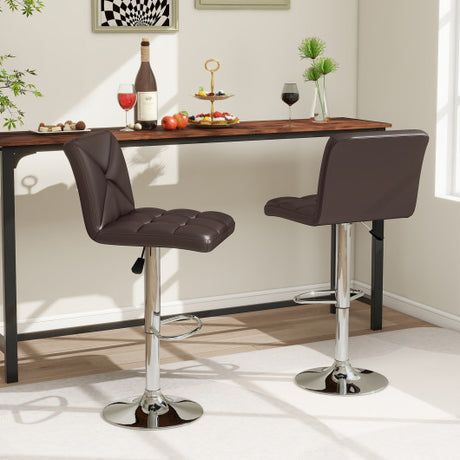 PU Leather Upholstered Bar Stools Set of 2 with Back and Adjustable Height-Brown