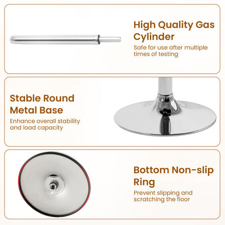 PU Leather Upholstered Bar Stools Set of 2 with Back and Adjustable Height-White