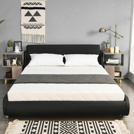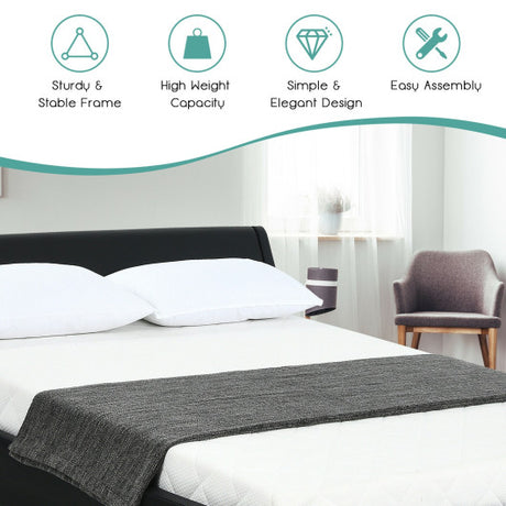 Queen Faux Leather Upholstered Platform Bed Frame Adjustable Headboard-Black