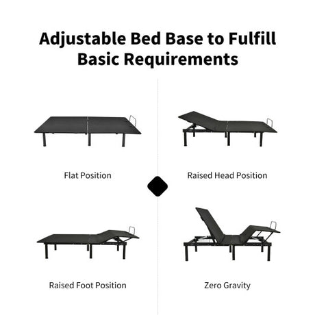 Queen Size Adjustable Bed Base Frame with Wireless Remote Control