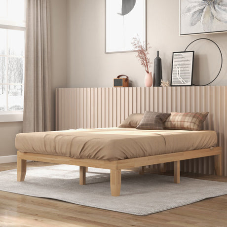 Queen Size 14 Inch Wooden Bed Mattress Frame-Natural