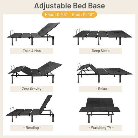 Queen Size Adjustable Bed Base Electric Bed Frame with Massage Modes