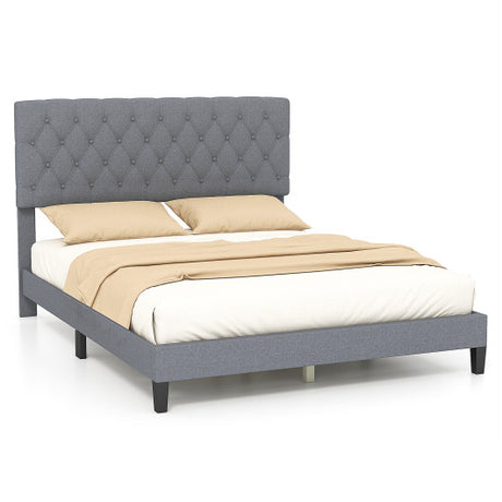 Queen Size Upholstered Platform Bed with Button Tufted Headboard-Gray
