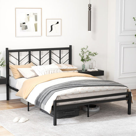Queen Size Platform Bed with Headboard and Metal Frame-Queen Size