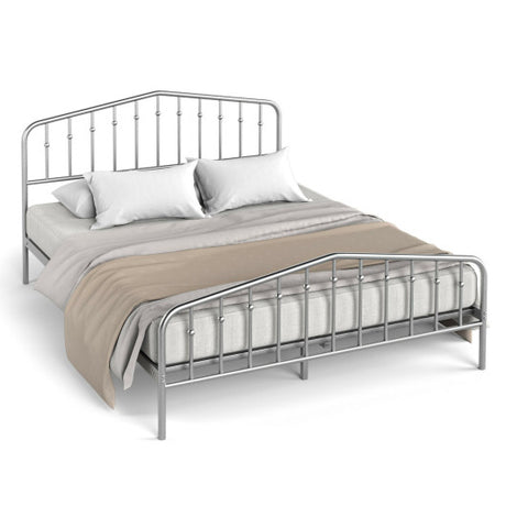 Queen Size Metal Bed Frame Platform Headboard and Footboard with Storage-Silver