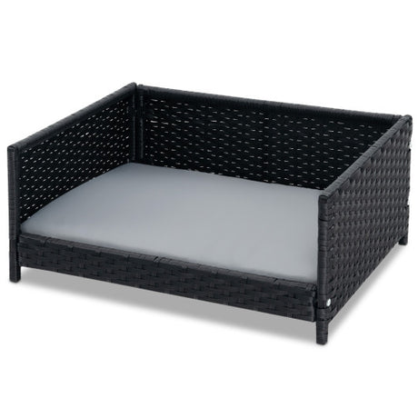 Rattan Dog Bed with Waterproof Soft Cushion for Medium Small Dogs Cats-Gray