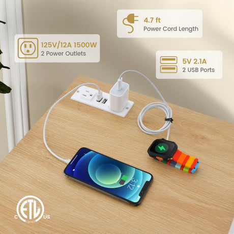 Rattan Nightstand with Charging Station Bedside Table with USB Ports and PE Rattan Door-Natural