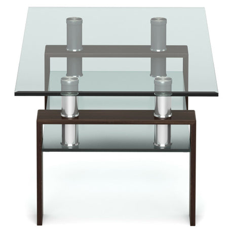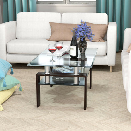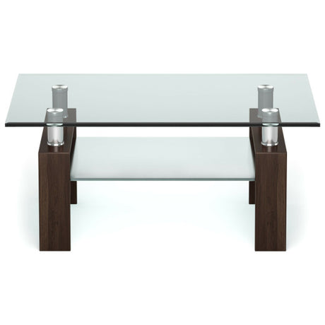 Rectangle Glass Coffee Table with Metal Legs for Living Room-Brown